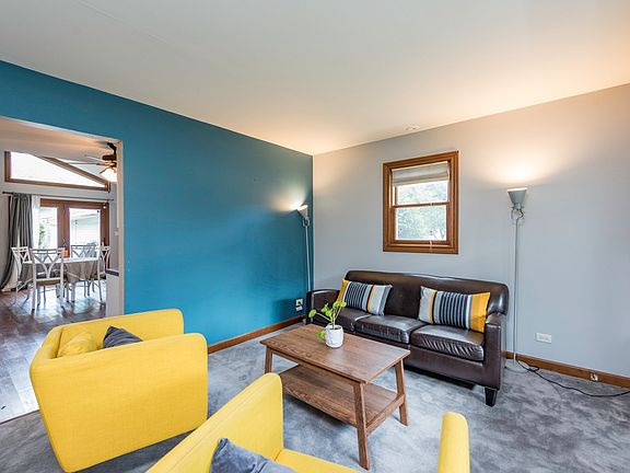 Spacious and beautifully maintained 3 bed, 2 bath home on an oversized 0.69-acre lot in the heart of Gurnee. This home features vaulted ceilings, a striking black marble fireplace, and abundant natural light through large windows and transoms. The open-concept kitchen offers white cabinetry, stainless steel appliances, and ample counter space. Enjoy multiple living areas, including a recreational room and dining spaces perfect for entertaining. Step out onto the expansive deck overlooking a large backyard, ideal for summer BBQs, gatherings, or simply relaxing. Features an oversized (25x38) 4+ attached heated garage, a shed for storage AND a 26x30.2 Heated pole barn (additional structure). Sitting in a Peaceful neighborhood, close to shopping, dining, schools, and I-94 access. A must-see!