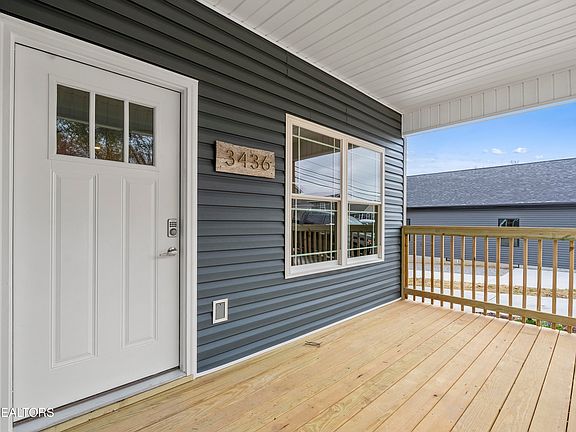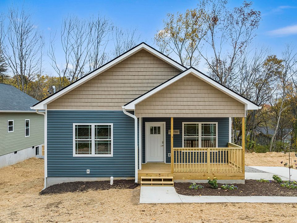 Outside, the navy vinyl siding and tan shingle shake accents give the home a classic coastal look that stands out on Gap Road. Covered porches in the front and back create easy spaces to enjoy coffee in the morning, unwind in the evening, and take in those distant Smoky Mountain views that remind you why living here feels so special.