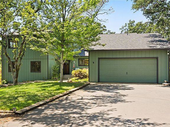 Let your North Chico house hunt stop here! Sitting on over 3 acres, this custom built home is in a private setting among the oak trees set far down a private drive with lots of amazing features. You'll immediately be drawn to the warm, vaulted tongue and groove ceilings that run throughout the main living and dining area. You will notice all of the windows capture the natural beauty of the terrain. The living room features large windows looking out to the back yard allowing for plenty of natural light, high ceilings, a cozy fireplace, and a custom built-in set of shelves. In the kitchen the same custom cabinetry compliments the bright white quartz counters, tile floors, and stainless steel appliances. Off the kitchen is an oversized den with a wet bar, stacked laundry, and garage access. The two guest bedrooms with a shared bathroom are situated downstairs. Up the stairs is a landing with a home office area and the master suite just beside. The master suite is very spacious and is truly a retreat with views of the property out every window! There is a walk-in closet, ensuite bathroom with tile shower and large vanity with lots of counter space. Outside is where the best features of the home truly shine, including the expansive deck with hot tub! This is the perfect space for entertaining, sipping morning coffee, or simply sitting and listening to the birds chirp. On the rear, lower part of the property, there is a new two stall metal horse barn with pen while the entire property is cross fenced making this property perfect for any other livestock or furry friends. Other notable features of the property include a newer tankless hot water heater, new exterior paint, roof under 10 years old, gutter guards to reduce annual leaf maintenance, mature landscaping with automatic sprinklers, a storage shed, and a paved driveway. This property is truly unmatched with the one-of-kind design and privacy just waiting for you to call it home!
