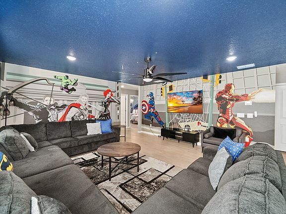 Welcome to Avengers Academy, where unforgettable days await in this amazing house. Perfect for Disney enthusiasts, this home features a cinema-worthy Avengers-designed loft area and a custom Star Wars game room. Kids will adore the themed bedrooms inspired by Toy Story, Disney Princesses, Alice in Wonderland, Lion King, and more. Enjoy your own private south-facing pool, BBQ, and lounge in the outdoor area. Located in the new Windsor Island community, this property offers easy access to Disney World, SeaWorld, and Universal Studios, making it an ideal choice for your Orlando adventure.