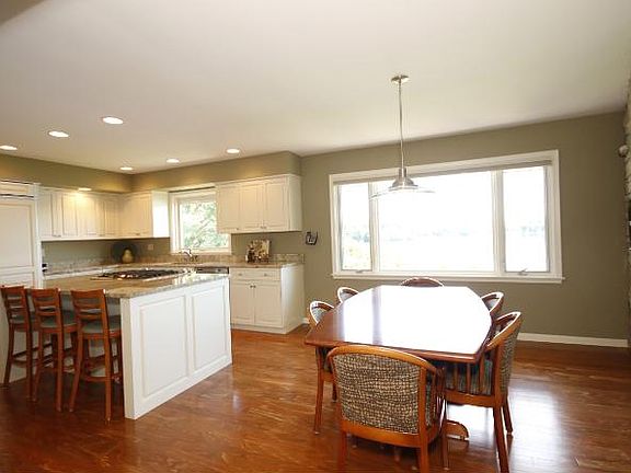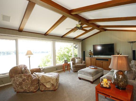Lake front, Lake view! Ultimate lakeside retreat! 150 ft. lot w/breathtaking panoramic views! Updated throughout, vaulted beamed LR w/full wall stone FP, granite center island kit, incredible w/o LL w/wet bar & FRPL. One of a kind setting.