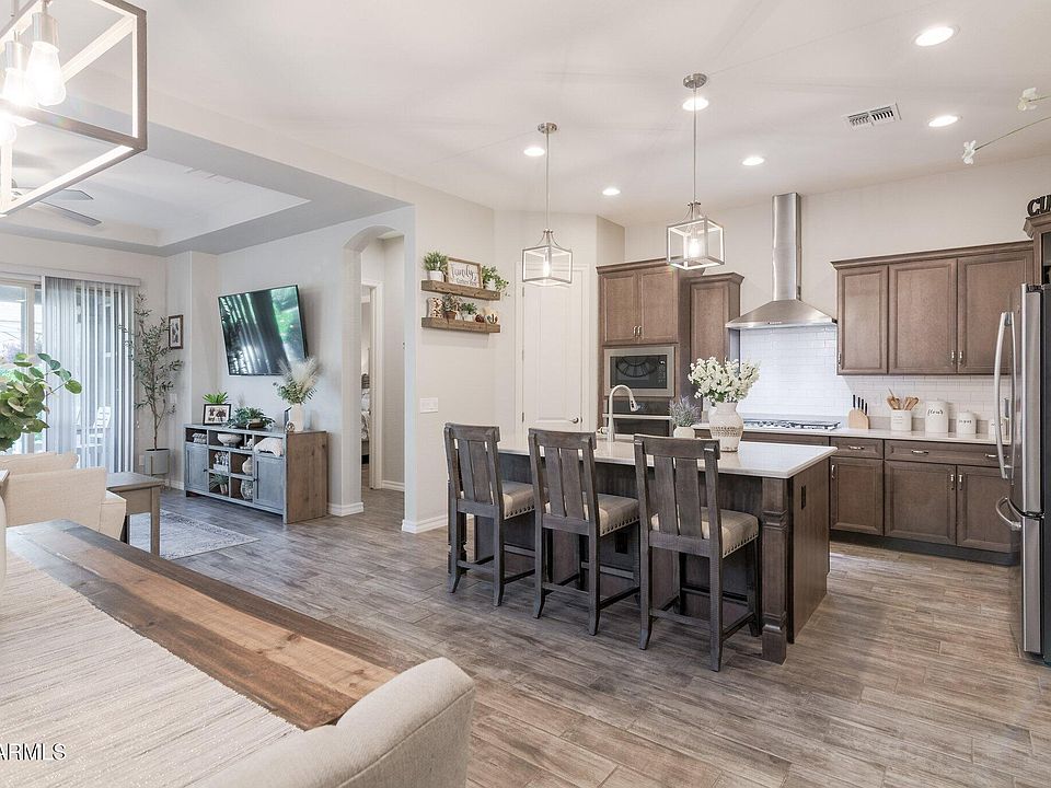 Stunning home in Morrison Ranch. This beautifully designed single story residence offers a perfect blend of comfort and modern living with 3 spacious bedrooms and 3 bathrooms. Inviting open floor plan: the spacious layout creates a seamless flow between the living, dining and kitchen areas, perfect for entertaining family and friends. Gourmet kitchen: enjoy your culinary adventures in your stylish kitchen featuring SS appliances, double oven, ample counter space and island. Relaxing master suite: Generous master bedroom provides a serene retreat with a statement wall, en-suite bathroom featuring dual sinks, private WC and large walk in shower. Two additional bedrooms and full baths offer plenty of space for family, or guests. Plus a Den with double doors to be used as desired.