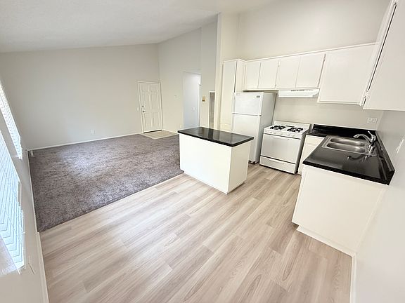 3rd Floor Upper Unit with Vaulted ceilings - 2 Bedroom 2 bath Unit $2,200 monthly $2,200 deposit - Unit is freshly painted with vinyl planks in kitchen, entry way and bathrooms and carpet in living room, hallway and bedrooms. 2 inch mini blinds have been installed throughout, verticals over the patio door. There is a balcony off of the bedroom. Kitchen equipped with stove, and dishwasher apartment comes with refrigerator too. Unit comes with washer dryer hook ups for stackable washer dryer unit. Tenant pays gas, water and refuse. A tandem parking space (2 cars() is included and located in the gated parking garage. $40 non refundable Application fee - We do require our tenants to have Renters Insurance. Tenant pays for water, gas, electric, internet and cable - unit comes with gated parking spot