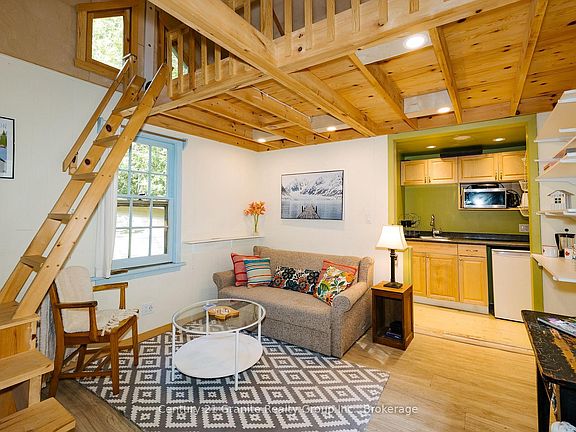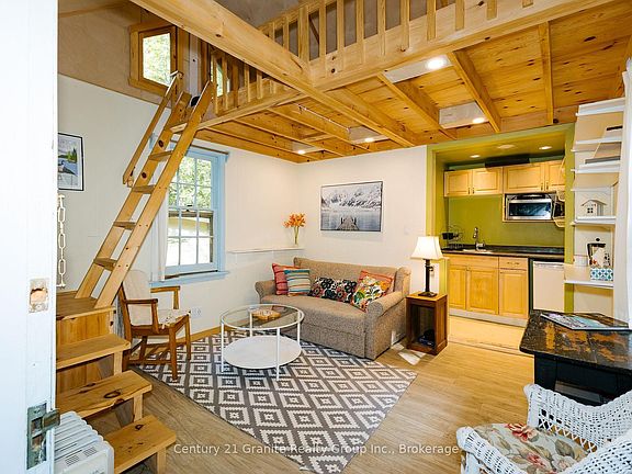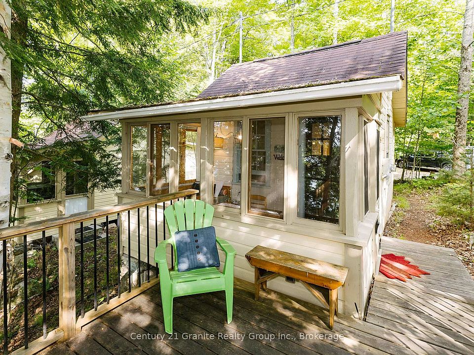 Dreamy Romantic Cabin in the Woods Haliburton Highlands Hideaway Welcome to your cozy escape in the heart of the Haliburton Highlands. This updated 270 sq. ft. 3-season cabin offers charm, comfort, and a connection to nature and community all nestled amongst the trees with a peekaboo lake view. Inside, you'll find a thoughtfully updated interior featuring a renovated 3-piece bathroom, stylish new lighting, a sleeping loft with a window, and an inviting enclosed sunroom/porch complete with windows and an adorable day bed ideal for curling up with a book or enjoying evening wine. Step outside onto the 100 sq. ft. deck, perfect for morning coffee or BBQs, and enjoy al fresco dinners on the screened porch, surrounded by forest views and birdsong. This cabin is on the grounds of the former Chateau Woodlands Resort, on the coveted Kashagawigamog 5-lake chain. Enjoy a true lakeside lifestyle with: Easy stroll to a beach area with plenty of seating; In-ground swimming pool, Two beaches & three docks with Muskoka chairs, Tennis & badminton courts, children's playground; A charming lodge with a children's activity space, library, and a dining hall for seasonal potlucks, A wraparound screened porch overlooking the lake; Excellent boating, swimming, and fishing opportunities, Beautiful walking and hiking trails throughout the 33-acre property. A low yearly maintenance fee ($3,065) covers property taxes, snowplowing, general maintenance, roofing/siding, septic, and water. Enjoy exclusive rights to your private cabin in this unique shared ownership community. Includes dedicated parking and is less than a 10-minute drive to Haliburton Village for local shops, dining, and golf courses. Whether you're looking for a romantic retreat, a peaceful weekend getaway, or a chance to be part of a welcoming lakeside community this dreamy cabin has it all.