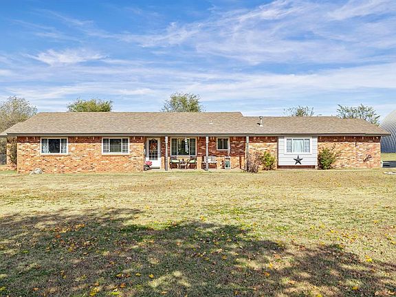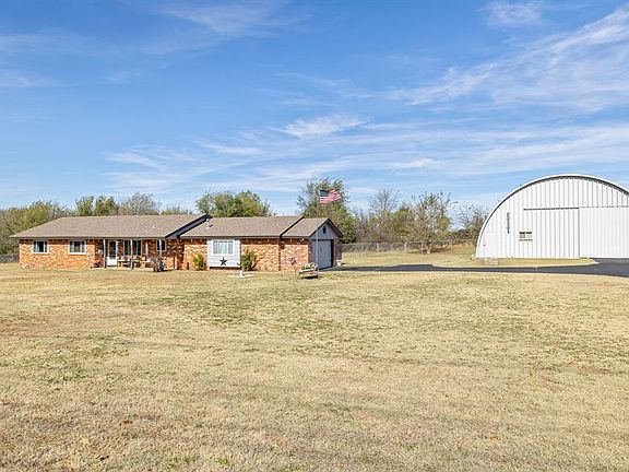 Beautiful 2 acre fully fenced 3 bed 2 bath home with a 30X40 shop!! No HOA!! Home has been updated at some point with french country style kitchen cabinets with granite counter tops and a 5 burner gas stove. Wood laminate flooring. Nice size laundry room features plenty of cabinets for storage, a mud bench for laying all your things on when coming into the house from the back door. Glass pantry doors access area that provides extra storage for all your kitchen supplies. Nice size secondary bedrooms that is currently housing a king size bed with plenty of extra room around it. Primary bedroom has en suite bathroom showcasing a stand up shower and a separate jetted tub. Primary bedroom has 2 separate walk in closets! The 2 acres is fully fenced with an iron entry electronic gate that can have back up battery attached to it. Asphalt driveway to the home and 30x40 shop complete the look and allow a solid driveway system. The 30x40 shop was recently insulated with spray foam insulation and features a nice heater. The shop has a secondary level inside. Conveniently located with minutes to Tinker, Moore, Downtown, SW OKC. Buyer to verify all info.