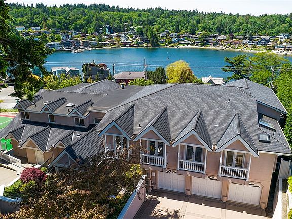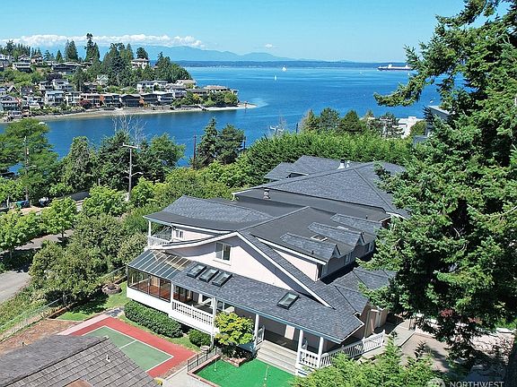 Unbelievable new price for this remarkable estate- 20,237 sq ft lot, custom home, views of the Salmon Bay Waterway, Puget Sound and Olympics and wonderful inside and outside entertaining areas. Property includes main house with rare indoor squash court, guesthouse, pickleball court, putting green, play/garden spaces. Main house features large formal rooms with soaring wood beamed ceilings opening to expansive veranda, kitchen with eating/informal living area, wet bar and gathering hall. Second floor offers view primary suite; five guest bedrooms, flex room for office/den, laundry. Lower level rec room, party kitchen, gallery area overlook squash court. Guest space over detached garage with kitchen, living, bedroom, 3/4 bath. 6 garage spaces