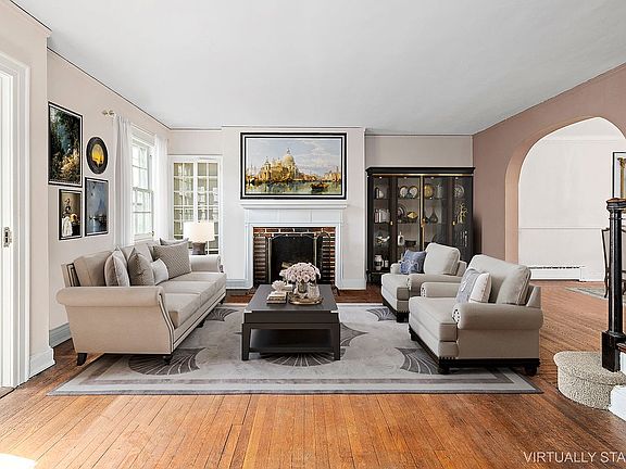 Brimming with pre-war character like curved archways, original hardwood flooring throughout, base