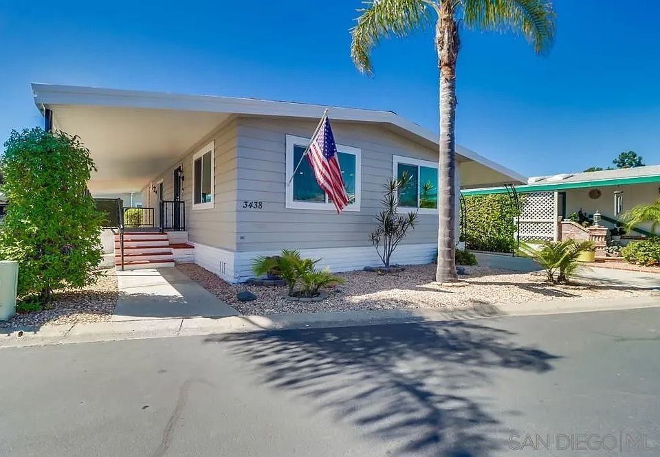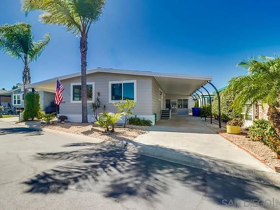Remodeled inside and out in 2025! Beautifully updated manufactured home in one of the best locations in Rancho Carlsbad. Views out to the golf course and rolling hills. Large covered deck and private backyard with fruit trees. Interior and exterior of this home were extensively remodeled with high end materials to create a serene and neutral living space. New windows and slider door. Freshly painted inside and out. Can recessed lighting installed and new drywall throughout home. Kitchen was opened up to create an eat in island and open concept flow to the dining and family rooms. Both bathrooms were tastefully remodeled and include new fixtures, new showers, free standing vanities and a built in make-up station in the primary with ample storage. Move in and start enjoying the sought after 55 plus community amenities including golf course, clubhouse, tennis and pickleball courts, community pool, sauna, gym, hot tub, ping pong, dog park, RV storage and more. You own the land and pay NO SPACE RENT. 24 hour guard gate and onsite management. Only minutes from Carlsbad Village and the beach. Includes a generous carport for parking and a bonus room that could be used as a shed, storage or workroom. See supplement for upgrade details. This is the one you have been waiting for! Remodeled inside and out in 2025! Beautifully updated manufactured home in one of the best locations in Rancho Carlsbad. Views out to the golf course and rolling hills. Large covered deck and private backyard with fruit trees. Interior and exterior of this home were extensively remodeled with high end materials to create a serene and neutral living space. New windows and slider door. Freshly painted inside and out. Can recessed lighting installed and new drywall throughout home. Kitchen was opened up to create an eat in island and open concept flow to the dining and family rooms. Both bathrooms were tastefully remodeled and include new plumbing fixtures, new showers, free standing vanities and a built in make-up station in the primary with ample storage. Move in and start enjoying the sought after 55 plus community amenities including golf course, clubhouse, tennis and pickleball courts, community pool, sauna, gym, hot tub, ping pong, dog park, RV storage and more. You own the land and pay NO SPACE RENT. 24 hour guard gate and onsite management. Only minutes from Carlsbad Village and the beach. Includes a generous carport for parking and a bonus room that could be used as a shed, storage or workroom. See supplement for upgrade details. This is the one you have been waiting for!