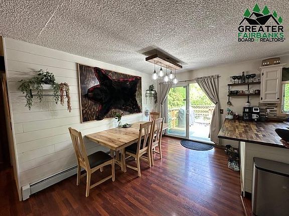 This large 4 bedroom home is located on corner lot, overlooking popular Chena Slough. Perfect setting to enjoy Alaskan wildlife. Downstairs is a toasty wood stove to enjoy. Large fenced yard in back of home leads off of deck overlooking the water view. Large, mature trees round out the countryside setting.
