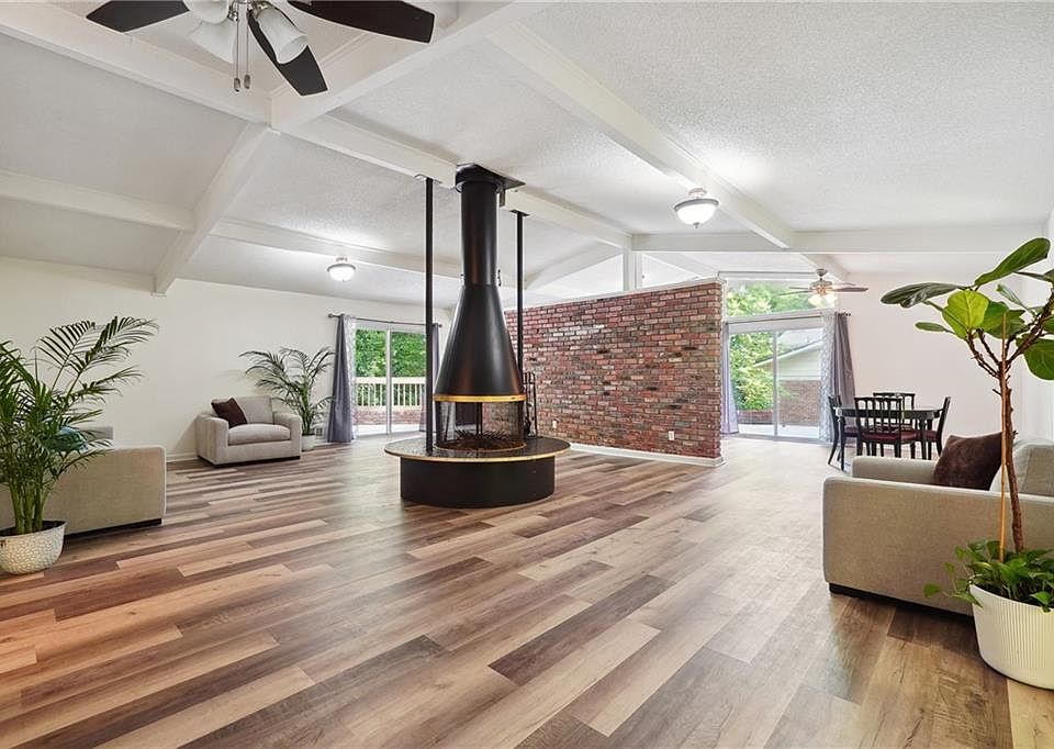 **Investors Act Fast!** Don’t miss out on another HUGE PRICE REDUCTION**** Don’t let the price fool you though, because it is in great condition and completely *MOVE IN READY!* Soon to be featured on **HGTV’s House Hunters**, this 1970s mid-century modern gem is an investor’s dream. With an open floor plan, A-frame ceilings, and original windows, this home radiates retro-modern appeal. The living room’s original gas fireplace and sleek kitchen, divided by a gorgeous brick wall is a perfect fit for homebuyers or investors looking for something a little different and unique. Added value comes with the private backyard, two separate patios, with three sliding glass doors exiting from the primary bedroom, living room, and kitchen and a two-car garage with extra storage room!
