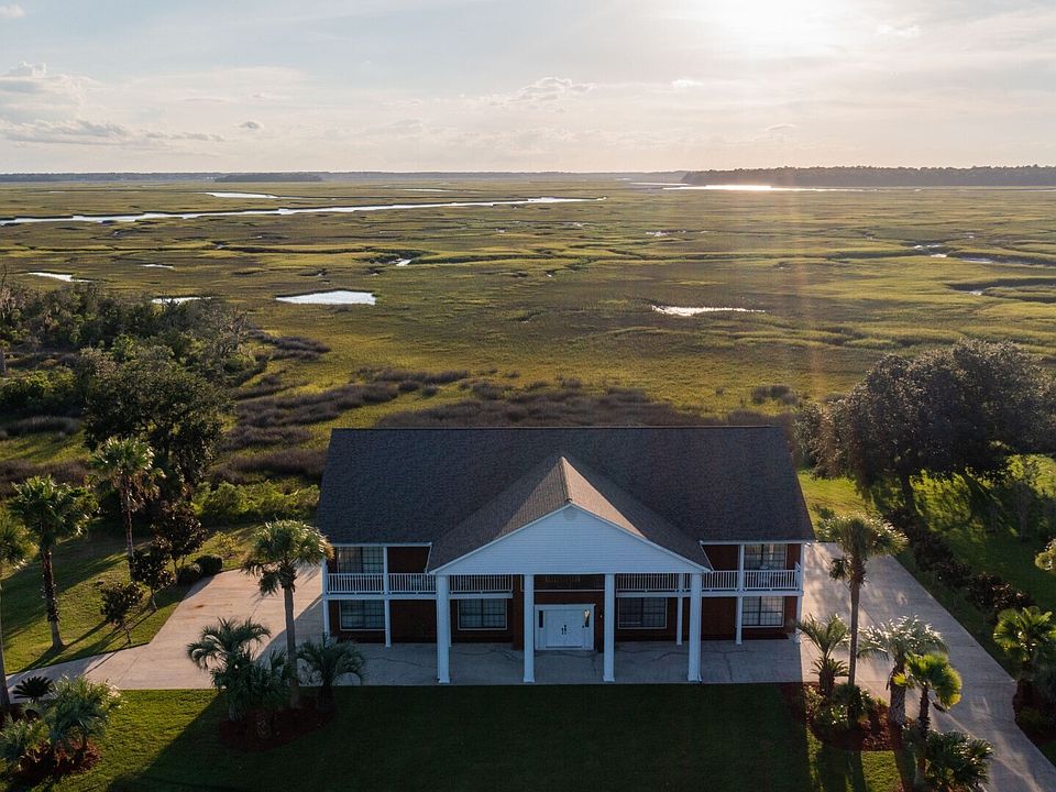 Enjoy the sunset every night! This beautiful 2-story brick home is on over an acre, located at the end of a cul-de-sac, and has stunning marsh and river views for miles! There is so much room in this home with 3 Bedrooms and 3 Baths PLUS 2 additional rooms that could be an Office and a Library, or Formal Dining Room (or whatever you need it to be), PLUS a downstairs Bonus Space with an additional 1536 sq ft. Upstairs is an open floor plan featuring a beautiful wood staircase and chandelier, hardwood floors throughout, a double-sided gas fireplace between the Living Room and Sun Room, Dining area, and so much more. The Kitchen features an island gas cooktop, double ovens, butlers pantry, plenty of cabinets, stainless steel appliances, and more. The Primary Suite features a large walk-in shower, clawfoot tub, double pedestal sinks, walk-in closet (with laundry connection too). The downstairs bonus space is heated/cooled, and there is tons of storage throughout the home and in the oversized garage. Located in Elliots Plantation, near Crooked River State Park and Boat Ramp. No HOA. No City Taxes.