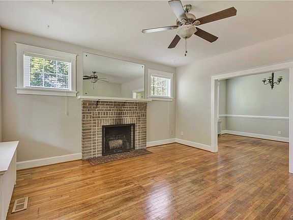 Adorable move- in ready cottage bungalow in desirable Henrico County. Your new home greets you with an inviting front porch, aluminum siding, brand NEW WINDOWS. Inside, enter into your living room with find HARDWOOD floors throughout, a wood burning fireplace, and fresh paint throughout. Follow the gorgeous hardwoods into the dining room with CHAIR RAIL MOLDING and a large window offering TONS of natural light. Continue into the kitchen with freshly painted cabinets, chic laminate countertops, new light fixture and vinyl floors. The home also features 2 generously- sized bedrooms ceiling fans and hardwoods. Outside, find a large 1 car garage with space for a workshop and paved parking area. This home is ready for the new owner to call it HOME!