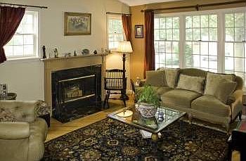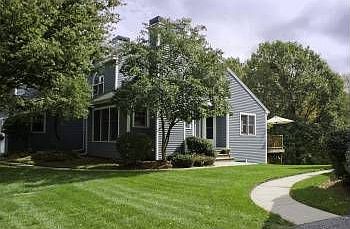 BISHOPS FOREST END UNIT!Salisbury style TH in Morningside Village w/1st FLR master suite.Many updates & special features!Hardwood floors in LR&DR.Dramatic architectural details! Step down LR w/FP, formal DR w/ access to private deck.Two additional BR's, full bath & large linen closet on 2nd floor.A walk-out basement will exceed all expectations w/beadboard moldings in FR & sliders to yard. Luxurious Spa bathroom has Sauna,whirlpool tub & shower! One dog or cat only.