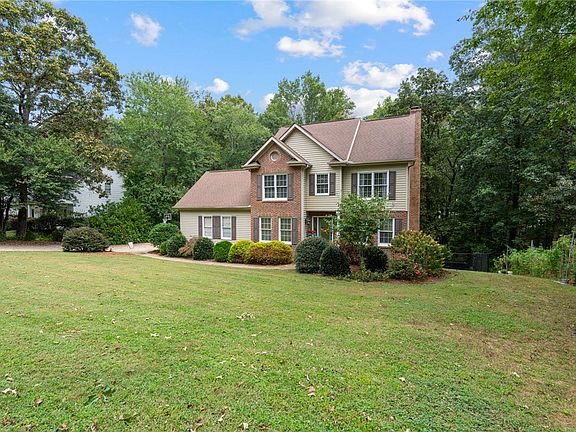 Welcome to 344 Camperdown Court in Belmont Plantation—located in the sought-after Anderson 1 School District! Perfectly nestled between Easley and Powdersville and just 12 miles from vibrant Downtown Greenville, this home blends location, charm, and modern comfort. From the moment you arrive, pride of ownership shines through. Beautiful landscaping, a brick-and-vinyl exterior, and a welcoming covered entry set the tone. Inside, a spacious foyer and gleaming hardwood floors lead you into the main living areas. The formal dining room boasts elegant textured walls, while a stylishly updated half bath and generous pantry add convenience. The kitchen is the heart of the home, filled with natural light and featuring timeless granite countertops, a coffee/prep counter, a cheerful breakfast nook, and included appliances—smooth cooktop, dishwasher, and built-in microwave—ready for move-in day. The inviting living room centers around a cozy wood-burning fireplace and flows seamlessly to the grilling deck, where you’ll enjoy views of the private, wooded, fenced backyard. Upstairs, you’ll find updated flooring throughout, refinished stair-treads, and a spacious bonus room. The nursery offers custom built-in shelving and a walk-in closet, while the laundry room is conveniently located near all bedrooms. The primary suite is a retreat with a walk-in closet, dual vanity, enclosed shower, and relaxing garden tub. Two additional bedrooms and a second full bath complete the upper level. Even the details impress—from an immaculate crawlspace with a central vacuum system to recessed lighting and abundant natural light. Thoughtful updates and plenty of storage make this home as functional as it is beautiful. Move-in ready and waiting for you to make it your own—don’t miss the chance to call this exceptional property home!