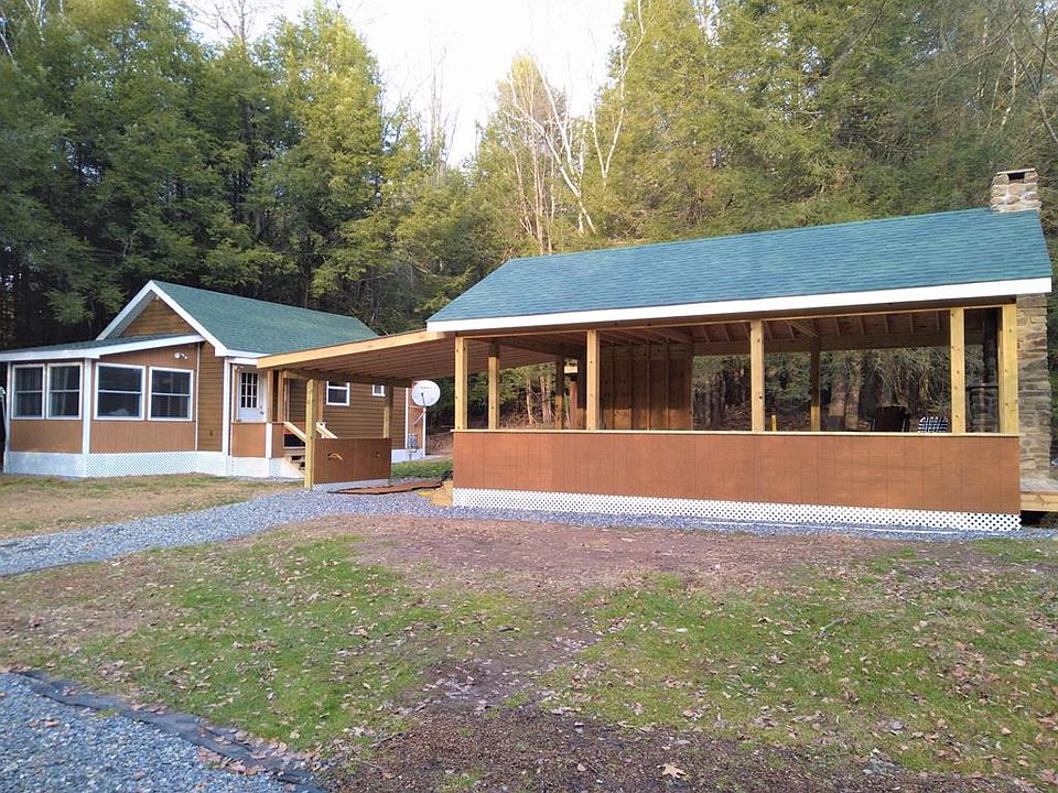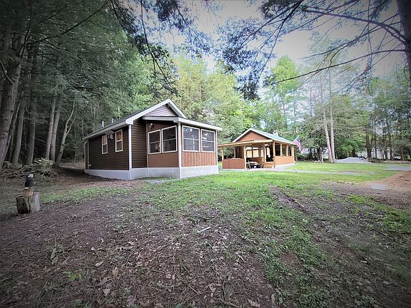 IDEAL LOCATION! This hilltop home is conveniently located one mile from Ives Run Recreation Area and only a short drive to the local stores and charms of Wellsboro. The main home features a one-bedroom, 3/4 bath cabin offering comfort and relaxation before your next outdoor adventure. The pavilion with its antique stone fireplace and portico offers a large space for hosting friends and family for your next gathering. The RV lot, complete with modern outdoor bathroom facilities, provides a private and inviting spot for guests to visit this tranquil wooded setting. This home is perfect for anyone looking for a place to get away from it all and enjoy the best mother nature has to offer. Some projects still being worked on, or make plans to complete your way! sqft per court house records, current taxes prior to new construction of 39'x15' pavilion with portico / carport addition added. This piece of paradise won't last, so call to set up your appointment today!