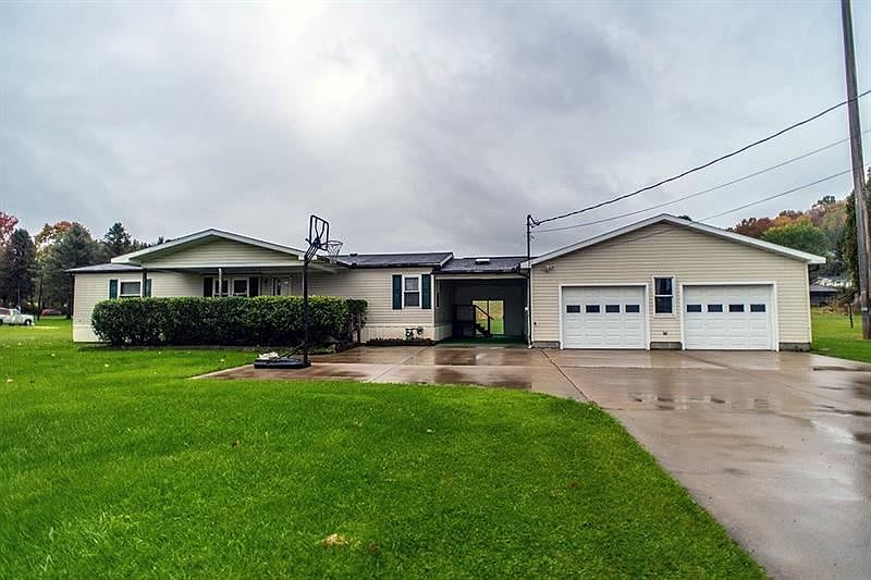 Found on a beautiful large level lot is this 3 bedroom, 2 bath manufactured home located on East Pike Road. Home features open floor plan, master suite, covered front porch, pantry area in the kitchen, breezeway connecting home and garage. The expansive 2 car garage includes new heating system, workbench and full bathroom.