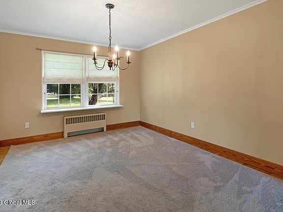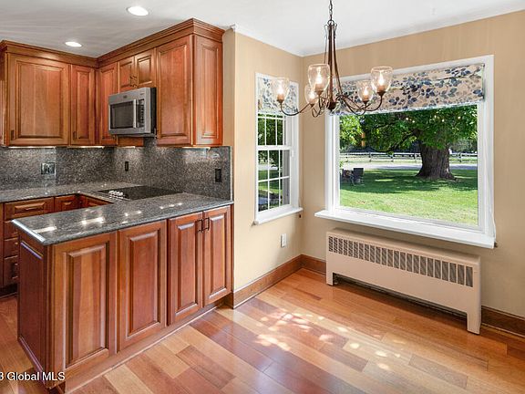 Situated on a peninsula type island shaped 1.83 acre private setting lot in the heart of Clifton Park bordering Farm to Market & Anthony road's, sits this 1551+ sq ft totally updated brick RANCH featuring Brazilian cherry & Oak HW flrs t/out. Updated kitchen has 40''soft close cabinetry, SS appliances, dbl oven, granite counters, & specialty lighting. Breakfast area looks out picturesque window so you can start your mornings off right. Formal LR has masonry brick gas FP. Updated baths t/out are stylish & tasteful. Detached over-sized 2 car GR, 3 season room is a delight, full dry basement, & beautiful IG pool. This is a unique RANCH home w/ plenty of privacy yet your so close to the conveniences of Clifton Park.