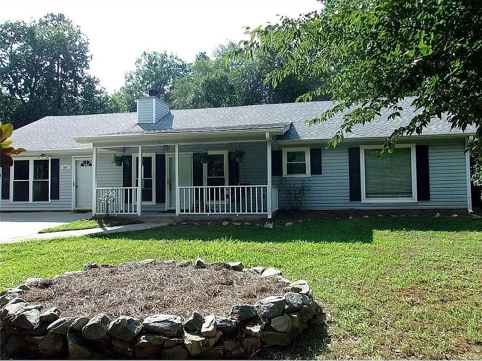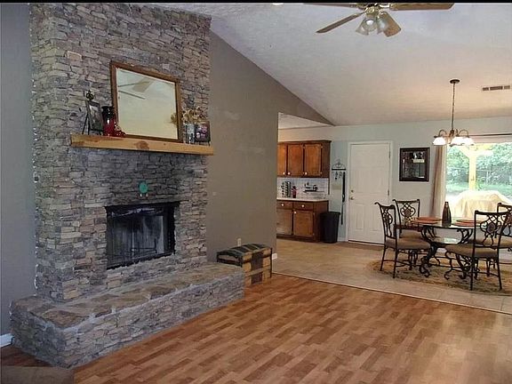 Country charmer in great West Jackson County School area. Original floor-to-ceiling stone-stacked fireplace. Open and bright inviting floor plan with large vaulted family room. Kitchen with Corian countertops and breakfast area. Extra oversized great room/media/rec room. Laminate flooring throughout. Relax on the rocking chair front porch or large covered back porch. Fenced back yard. No HOA. Roof only eight years old. Brand new AC/heat!