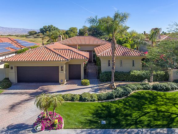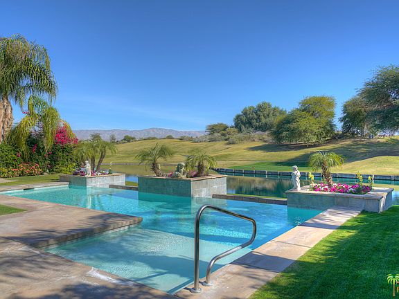 This is Your Dream Home in Legacy - Mission Hills! This light and bright home features 3 bedrooms with en-suite bathrooms along with a guest powder room. The open kitchen features granite countertops, stainless steel appliances and a cozy breakfast bar. While the inside of this home is gorgeous, it's the outside that stuns! Expansive views of the lake and fairway greet you along with the large infinity pool with spacious tanning shelf. Lush landscaping surrounds this property offering privacy and beauty making this a true desert oasis. Entertainers will love this home as it comes complete with an outdoor kitchen, teak patio furniture, elevated spa and plenty of space to play! You won't want to miss this!