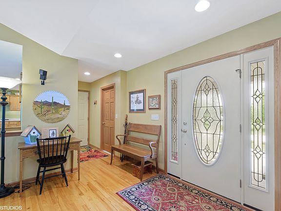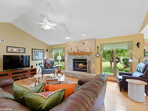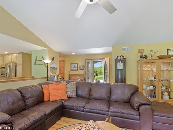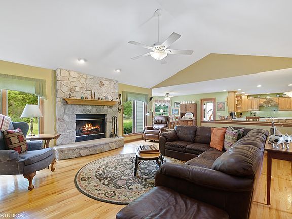Welcome home! Meticulously maintained, one owner custom-built ranch with beautiful floor plan. Oak trim, recess lighting and 6 panel oak doors throughout. Spacious foyer opens to vaulted great room showcasing wood burning fireplace with stone surround, wood mantle and concrete hearth. A Chef's kitchen with abundance of hickory cabinets, corian counters, breakfast bar, all stainless steel appliances, double oven, and pantry. Dining room features plenty of room for a large table and a bay of windows overlooking the spectacular view of your professional landscaped yard with a door that leads to a 9 X 15 covered porch. Relax on your covered porch or stamped concrete patio with endless hours of bird watching or enjoy gardening in your 35 X 55 garden on over 1 acre lot with mature trees. Plenty of room to roam! Spacious master bedroom with plenty of light, 6X6 walk-in closet, en suite bath featuring fully tiled floor to ceiling walk in shower with bench and glass door, oversized 6ft whirlpool tub with tile surround, porcelain tile floors, and vanity with linen closet. 2nd and 3rd bedrooms conveniently located with full hall bathroom. 1st floor laundry room with sink, white cabinets, and counter space. Need more room for entertaining? Full finished english basement with 9ft ceilings, cedar trim/paneling throughout, full bathroom, family room, wet bar, storage room and workshop with stair access to the oversized 3 car garage (24 ft deep) with 8ft doors, utility sink, speakers, and hot/cold hookup. What a man cave! Newer asphalt driveway, Hardie Plank siding, Anderson windows, watch dog backup battery, and the list goes on. Attention to detail is at every turn! Quality construction. Truly is a must see!