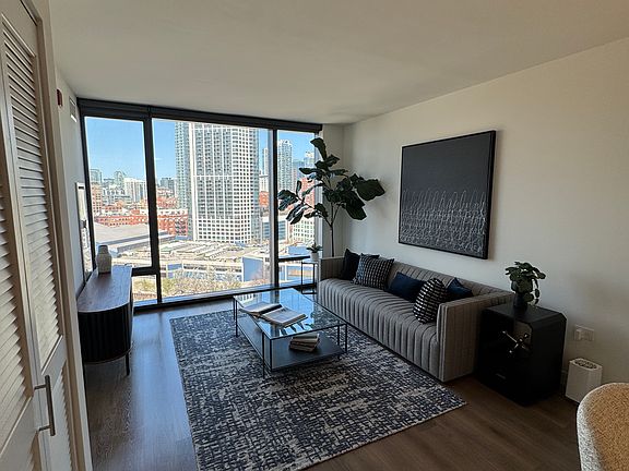 Live in the heart of Fulton Market in this stunning one-bedroom, one-bath luxury apartment. Enjoy floor-to-ceiling windows, sleek hardwood floors, and a chef-inspired kitchen with quartz countertops and premium stainless-steel appliances. The spacious bedroom features a walk-in closet and spa-style bath with marble finishes.