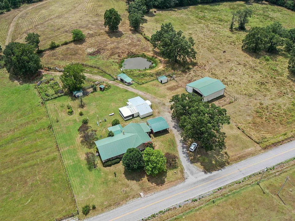 The house with 3 acres a barn and a smaller shop with a walk -in cooler. There is also a pond with the house. Great min. farm with sheds for animals The property can be bought with up to 70 acres. The house is spacious with a large eat in kitchen with a dining rm. Both Midland and Pangburn schools buses come by the house.