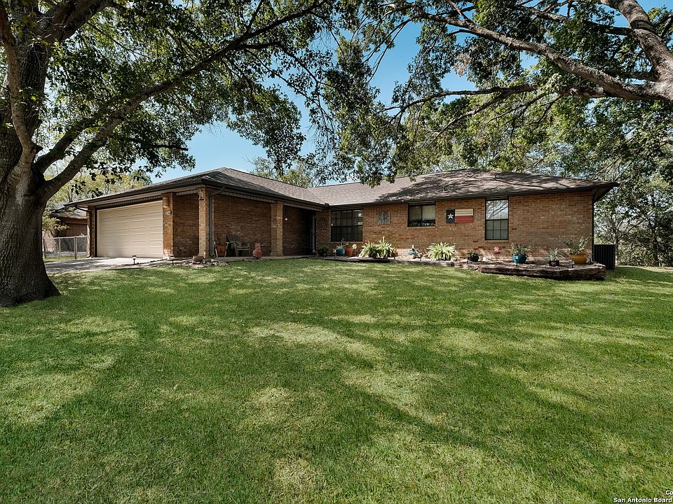 Welcome to peaceful living near beautiful Lake McQueeney. This charming 3-bedroom, 2-bath home sits on over a half-acre lot and is tucked away in a small, friendly community where neighbors still wave hello, and everyone knows each other. Enjoy the quiet comfort of country living while being just minutes from the conveniences in the town of Seguin, TX. Residents here have exclusive access to a private neighborhood boat ramp, perfect for weekend adventures on the water - whether you enjoy fishing, boating, or the simple relaxation of the water. On the spacious lot, you will find mature trees and a fenced yard that is perfect for pets and/or play. Inside, sunlight pours through an abundance of windows, and outside, a west-facing, screened-in, porch provides a great view of Texas sunsets. The home has bedrooms with plenty of space, a bright kitchen, and an inviting living area that make it easy to unwind or entertain. Whether you're just starting out or looking to downsize, this home offers the perfect balance of tranquility, community, and convenience. The house recently received updated flooring (2023), a roof (2021) and HVAC (2021). Don't miss this opportunity to enjoy lake life at an affordable price - come see what makes this neighborhood so special!