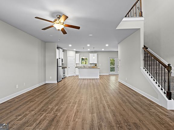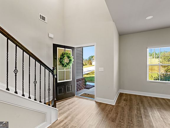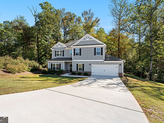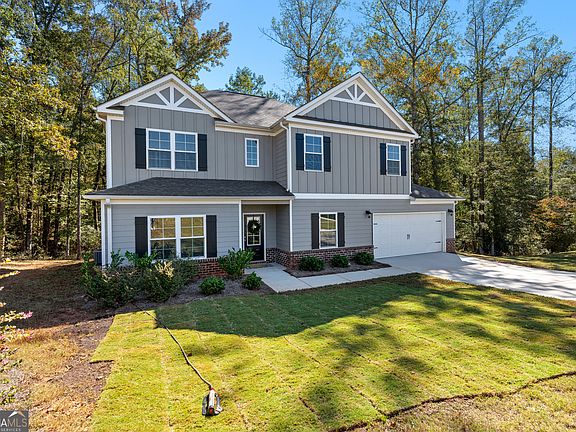 Charming Traditional with Craftsman Details in a Peaceful Setting. This beautifully maintained two-story home blends traditional architecture with craftsman touches for timeless appeal. The inviting front entry opens to a spacious main level featuring a flexible layout - with two bedrooms (or perfect office/playroom options) and a full bathroom, offering convenience for guests or multi-generational living. The open-concept living area provides generous space for relaxing and entertaining, flowing seamlessly into a bright kitchen with granite countertops, ample cabinetry, and a large dining area ideal for family gatherings. Upstairs, the primary suite feels like a retreat, complete with a spa-like bathroom featuring dual vanities, a soaking tub, and two separate closets. Two additional bedrooms share a well-appointed hall bath. Enjoy outdoor living on the screened porch overlooking a private, wooded backyard with a tranquil creek and no planned development - the perfect spot to watch wildlife and unwind. Additional highlights include a two-car automatic garage, hardy board siding with brick accents, dual-pane windows for energy efficiency, and a neutral color palette throughout. Located in a desirable neighborhood with no HOA. Commuting for work? This advantageous address is less than 11 miles from I-75 at exit 205 and the River Park e-Commerce Center. Wellstar Spalding, Schools, and the downtown business district are short trips so you can make the most of your time! Ask your agent about 100% financing!
