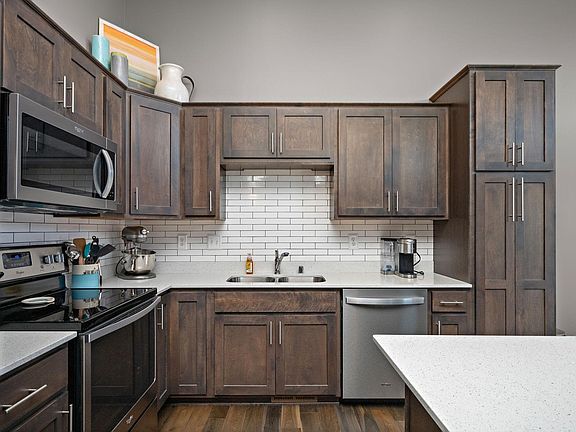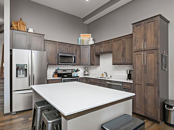 Upgrades! Upgrades! This luxurious End Unit townhome is packed with upgrades and truly turn-key for the next owner. This meticulously cared for home was thoughtfully designed with custom closet organization in all 3 bedrooms, additional storage lockers to maximize the foyer area, and even custom bathroom storage solutions. If there was an upgrade option, it was picked out during the selection process. Hardwood floors throughout the main and upper levels including the stairs, LVP flooring in the lower level, unique lighting options, quartz countertops, slow close kitchen cabinets, pull-out shelving in pantry, and custom built-in laundry cabinets all contribute to the high-end feel. Even more improvements have been added recently to include the classic subway tile backsplash in the kitchen, fresh paint throughout, new water softener and new washer. Enter the expansive foyer from the front door or garage with a well appointed landing zone that is organized with the help of a custom built-in storage area, thoughtfully crafted for keeping everything in one place. The open concept main level is a true delight with a sun drenched living area, kitchen and dining room leading out to the deck. The upper level offers an oasis with a private primary bedroom, ensuite, and walk-in closet. A second bedroom, bathroom, and conveniently located laundry room complete this level. The lower level has a large family room, third bedroom, bathroom and walks out to the patio. Easy access to local amenities like the 2 nearby parks, shopping, top-rated schools, and both I-35E & 35W for commuting.
