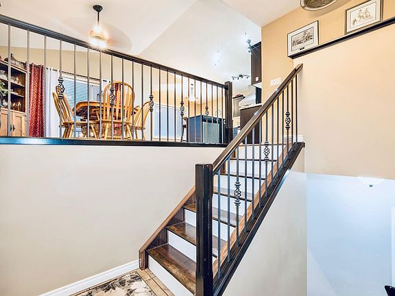 Hardwood flooringBright open concept layoutVaulted ceilingModern kitchenEpoxy countertopsStylish backsplashCorner pantry