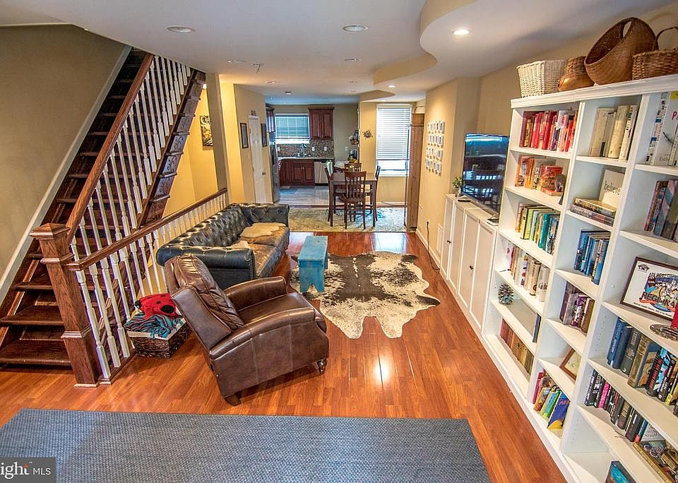 This classic East Mt. Airy row home was completely renovated two years ago and is move-in ready. It is set back from the street with a front yard featuring an established fruit tree and a beautifully maintained flower garden. The front porch is ideal for enjoying an evening drink and waving hello to the neighbors in this very friendly community. Enter into the well-lit living room, which continues into the dining room and kitchen in a modern, open-concept take on the classic row house style. The kitchen has cherry cabinets, granite countertops, stainless steel refrigerator, dishwasher, built-in microwave, and gas range. A door from the kitchen leads to the back deck overlooking the quiet alley, ideal for grilling and al fresco dining. The deck also covers the off-street driveway, offering some protection for your vehicle below. A convenient powder room rounds out the first floor. Up the original staircase with carved scrollwork, you'll find the large main bedroom boasting loads of natural light, an en suite bath, and large closet. Down the hall from the main bedroom is a second bedroom, also large, complete with a cedar closet. The third bedroom, located between the main and the second bedroom, is slightly smaller and great for a child. The main bedroom will comfortably fit a king size bed, the second bedroom comfortably fits a queen, and the third bedroom comfortably fits a twin or a full size bed. The shared upstairs hall bath has plenty of room and includes a full-size tub. All three bedrooms have ceiling fans and custom black-out window treatments. The finished, walk-out basement makes a great play space for kids, an office, a family room, or simply extra storage and closet space, and even includes a very special playhouse built-in under the stairs. A full bathroom with a stall shower and laundry area with energy-efficient appliances completes the basement. A new silicone roof was installed in 2017 and includes a 10 year warranty (all paperwork is available). High efficiency gas heater, hot water heater, central air, and vinyl windows are all new as of 2017. The house is situated on a wonderful, neighborly block within easy walking distance of a great playground with a public pool and rec center (1 block), Chestnut Hill East regional rail (3 blocks), the 18 bus (1 block), and all the amenities of Germantown Avenue (3 blocks), including Acme, Lovett Library, and multiple shops and restaurants. This neighborhood is ideal for families looking for a little more space and a more residential feel, but with a very easy commute to downtown.