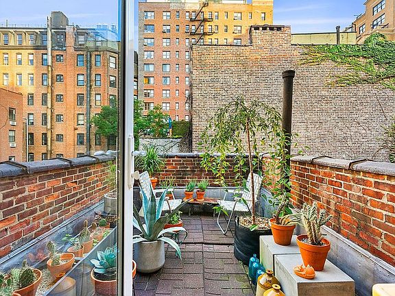 This wonderful 1 bedroom townhouse apartment with an oversized private terrace is situated on the Gold Coast of West End Avenue in the heart of the Upper West Side! The building, 344 WEA, has 4 flights and 8 units. The unique split-level layout differentiates both the living and dining areas. The renovated kitchen is beautifully appointed with stainless steel appliances, subway tile backsplash and holds ample storage space. Prewar details abound, including hardwood floors, a wood-burning fireplace, high ceilings, and exposed brick. Enjoy views of townhouse gardens and the landmark architecture of the Upper West Side. Laundry on-premises. New security system called Swiftlane!