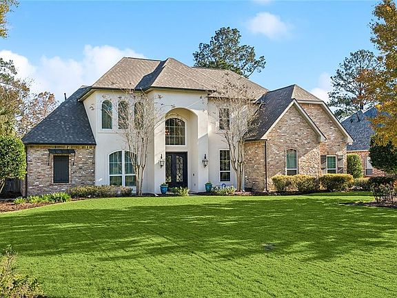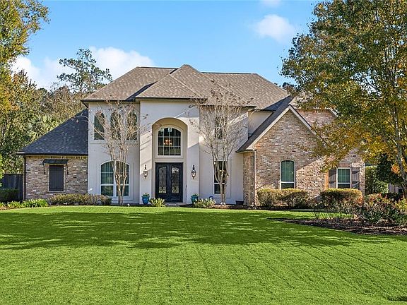 This well maintained and move-in ready home features a gorgeous backyard oasis and is one of only twelve homes in the neighborhood with views and direct access to the neighborhood pond. The first floor features a grand foyer with a unique stair design, two living rooms, an open gourmet kitchen with a walk-in pantry, a spacious master suite and a home office that could serve as a 5th bedroom. The second floor is home to 1 ensuite bedroom, 2 additional bedrooms with a shared bath and a bonus/recreation room. The backyard oasis has a screened porch, large chlorine swimming pool, a cabana with a fireplace and motorized awning, plenty of yard space and direct views and access to the neighborhood pond. The long list of upgrades and amenities include a new roof (2024), a GE Café Oven (2023), a whole-house generator (2022), new A/C systems (2022), 2 water heaters (2022) and a Jenn-Air convection oven/microwave (2022). Hunters Glen is a highly sought after gated community conveniently located in the heart of Mandeville. Fully immerse yourself in this home via the 3D Virtual Tour.