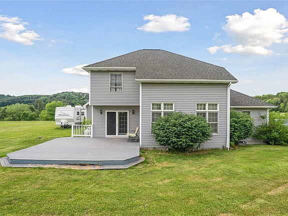 Perched atop a scenic hill, this stunning 2006-built, 3-bedroom, 2.5-bathroom home offers the perfect blend of space, functionality, and country charm. Enter the welcoming foyer, featuring a versatile formal dining room to your right and a convenient half bath leading to the spacious first-floor master suite with dramatic cathedral ceilings. Offering a large, open-concept living room with cathedral ceilings that flows seamlessly into the eat-in kitchen. Rounding out the main floor is a main-floor laundry room, making this an ideal home for all ages. Upstairs, discover two generously sized bedrooms, a full bathroom, and a large storage room for all your belongings.