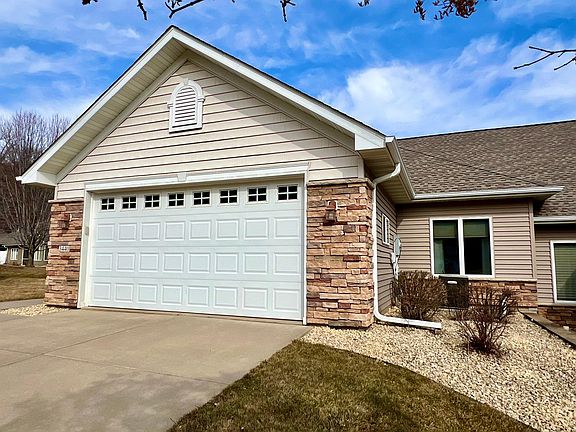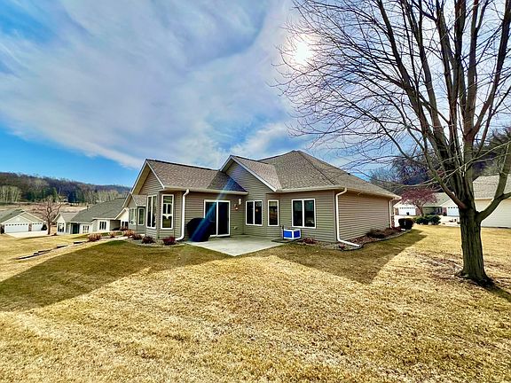 Wonderful one-level living 2 bedroom, 2 bath townhome located near retail, restaurants, medical and more yet surrounded by woods and bluffs. Easy access to walking paths to enjoy the scenic surorundings. Attractive exterior and spacious and open interior. Kitchen and informal dining, formal dining room, living room with see-thru gas fireplace to the light and airy sun room. Walk out to the patio and enjoy lounging, grilling and bird watching. Primary suite includes a large walk-in closet and 3/4 bath. Additional full bath near 2nd bedroom. Large laundry room with sink, cabinetry and closet plus utility closet. Lots of storage throughout. Roof is 2 years old. Easy, maintenance-free living in this lovely townhome!