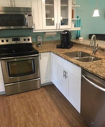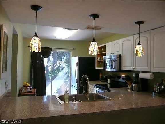 Resort style Condo minutes from 5th Ave Old Naples . Totally redone end unit with all new impact sliders and windows ,brand new kitchen with granite and stainless steel appliances , remodeled bathrooms and laundry room with granite ,wood grain tile floors throughout , crown molding as well as 6 inch baseboards , new lighting and fans , A/C recently replaced , storage for bicycles and beach chairs ,screened lanai . Radom mitigation system added . 4 pickle ball courts A MUST SEE to appreciate