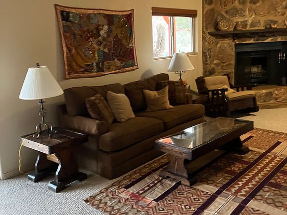 Large, (2600 sq ft) two level home in quiet neighborhood on a dead end street. Located on large 2.5 acre lot. 4 bedrooms, 2.5 bath. Recently renovated with granite counter tops and travertine tile flooring. Master bedroom has private bath and small private sun room. Two living areas on each level. Home comes fully furnished. Large wrap around deck with beautiful views of the Moab Valley. Two car garage. Washer and dryer on site. Located in Spanish Valley near beautiful hiking trails and open space. Pets considered with additional deposit. No smoking. Available at beginning of March (03/02) . 6 or 7 month lease is $3200/month, Year (+) lease is $2700. 6 month minimum but Year lease preferred. Utilities included; internet, recycling, trash, water/sewer, and 1st $100 of electricity. Dog/pet will be considered with additional pet deposit.