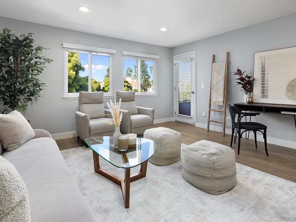 Gorgeous top floor unit with no detail spared in the heart of UTC for a convenient and maintenance-free lifestyle! Kitchen features quartz counters, cabinetry extended to the ceiling and corners and a pantry added for additional storage. New dual-paned windows, plumbing, flooring, paint, etc..the list goes on! The resort style complex provides a heated pool & spa, fitness center, on-site management services, a serene courtyard, and lush landscaping throughout. Very strong HOA financials. Live a vibrant, urban lifestyle with easy access to shopping, dining, and entertainment and a short drive to world-famous La Jolla.
