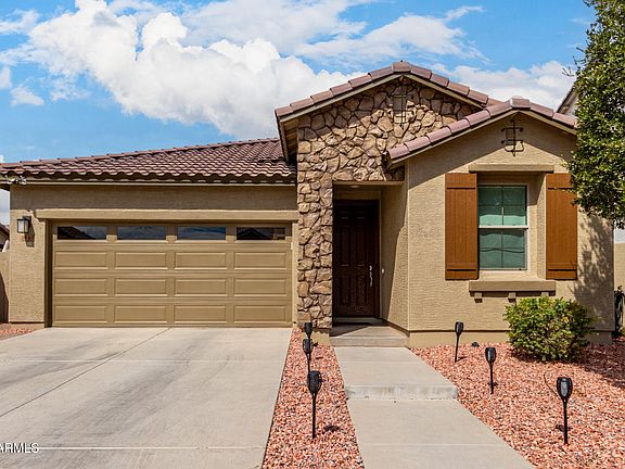 Inside, enjoy the expansive kitchen with quartz countertops, long island and 42'' Birch cabinets. This open floor plan is filled with light and flows naturally. Upgraded tile and carpet throughout. Bonus generator plug and generator included. Security system included. Finished backyard with faux grass for a clean, green and low maintenance look!