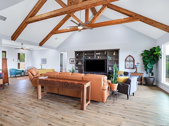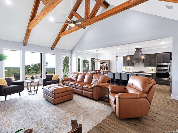 Luxury living on over 12 acres North of Canyon Lake!! Overall square footage is 3804, the main house is 2804sqft with 3 bedrooms, 2.5 baths, and a true study; and the casita/guest house is 1000sqft with 2 bedrooms and 1 full bath and 1 Car Garage. Nestled amidst the breathtaking beauty of the Hill Country, this magnificent property offers incredible views and a private country living feel. The Main home has a 3-car garage, and highlights a rustic charm with modern convenience, while the guest house provides additional comfort and versatility. As soon as you step inside the Main Home, you'll be captivated by sweeping views of the majestic hills that surround this property. Large windows invite the beauty of the outdoors in, creating a serene and inspiring atmosphere. The open floor plan, high ceilings, and rustic wooden beams create a warm and inviting ambiance. It's an ideal space for both relaxation and entertaining. The kitchen is a chef's dream with custom Knotty Alder Wood Cabinets finished in a beautiful gray, stainless steel appliances, a gas cooktop, and an envy-inducing pantry. Cooking and dining here will be a pleasure. The master bedroom is a retreat in itself, strategically located on the opposite side of the home from the other two bedrooms, providing privacy and tranquility. A private hallway with a half bathroom, a mud bench, and a convenient laundry room with incredible storage ensuring everyday living is a breeze. Plus, a separate stairwell in the garage leads to a spacious, foam-insulated attic for ample storage and could easily be transformed into an extra living space. The guest house is perfect for a family member or any guests with a full kitchen! It also includes an oversized one-car garage (Tall ceilings) and a generously sized covered deck for outdoor enjoyment and views for miles. With 12 acres at your disposal, you have the opportunity for wildlife exemption or AG exemption, provided you meet the requirements. Don't miss your chance to experience the serenity, luxury, and endless possibilities of this Hill Country haven. Schedule a showing today and start living your dream lifestyle surrounded by nature's finest.