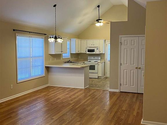 charming, one story home on a corner lot. open floor plan, with cathedral ceilings. separate master bedroom and bathroom. laminate and vinyl flooring. Move in ready.