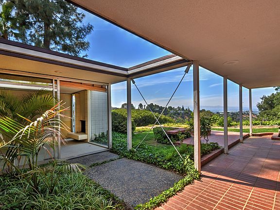 Mid Century Modern custom built home nestled in the hills of Sherman Oaks near Mulholland Drive. Floor to ceiling windows look out to beautiful views of the city lights and scenic mountains. Spacious one story with an indoor / outdoor living environment surrounded by lush trees and greenery. There are 4 bedrooms plus a den and additional family / game room featuring a wet bar, fireplace and built-in bookcases. It could be used as a second master bedroom suite. Large living and formal dining rooms include a buffet area and fireplace. Kitchen opens to a den/ family room and looks out to beautiful views. Private yard and gardens, fire pit and patios for lounging and entertaining. Attached 2 car garage plus a large driveway for off street parkingGreat location and neighborhood with easy Westside access. First time on the market and a rare offering!