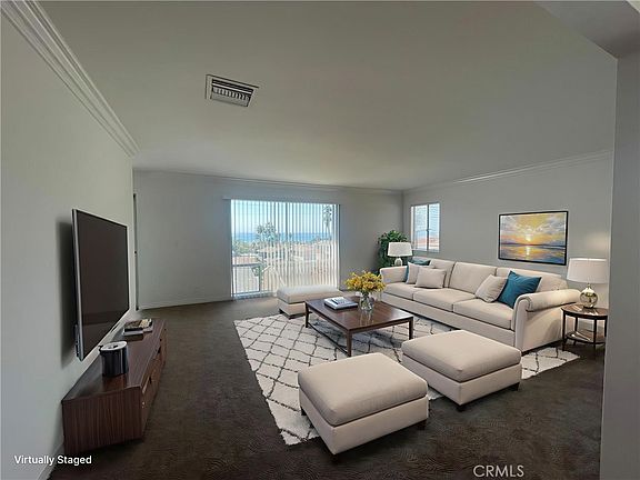 This second level unit sits on one of the highest elevations on Via San Juan, maximizing the breathtaking views and coastal charm. Unit features brand new appliances in the spacious kitchen. Fresh paint throughout, and new carpet just installed in both bedrooms and living room. Master Bedroom includes a full bath with marble tile in the tub shower. The 2nd bathroom includes a walk-in shower. Parking in the driveway, and a single garage space for a small car which also includes the washer & dryer.