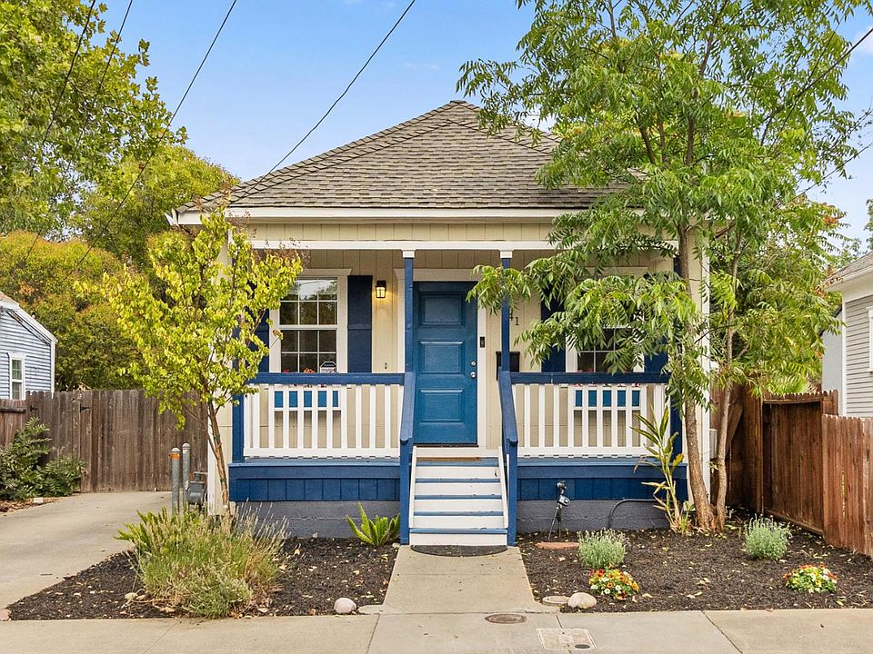 Welcome to this turnkey bungalow, where modern convenience meets neighborhood charm. This 4-bedroom, 2-bath home offers 1,316 sq ft of thoughtfully designed living space with stylish upgrades throughout. The bright, open-concept kitchen features marble countertops, designer tile backsplash, a farmhouse sink, stainless steel appliances, and a center island with butcher block dining bar, perfect for gatherings. Flowing seamlessly into the spacious family room, you'll find custom built-ins and a cozy electric fireplace for warmth and ambiance. The primary suite is a true retreat with a spa-inspired bathroom showcasing a large walk-in rain shower with bench seating, double vanities, and granite counters. Additional highlights include indoor laundry, beautiful dark flooring, exposed beams, and a brand-new HVAC system for year-round comfort. Step outside to enjoy a private, spacious lot backing to open space, a rare find in the city. The oversized detached garage offers excellent potential for an ADU, guest unit, or rental income opportunity. All this, just minutes from UC Davis Med Center, Shriners Hospital, McGeorge School of Law, and the vibrant Broadway Triangle. Welcome home!