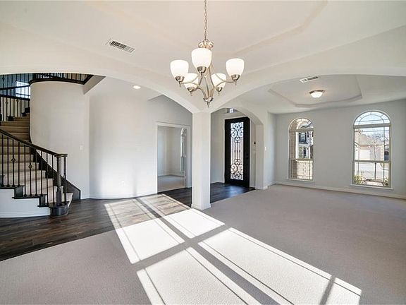 MLS# 13974636 - Built by First Texas Homes - Ready Now! ~ The kitchen island boasts custom cabinets, pendant lighting, and a butler's pantry.. The built-in appliance package includes 36" cook top, microwave, and dishwasher. The master suite boasts dual vanities, garden tub, separate shower, and a large walk-in closet. Media room includes raised flooring, an entertainment bar with granite counter tops, as well as pre-wired for surround sound. Additional features include exquisite trim details, gorgeous Buffalo Forged Iron front door, luxurious iron stair railing, home automation, full sod, full sprinklers, full gutters, large covered patio, and much more!