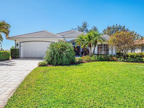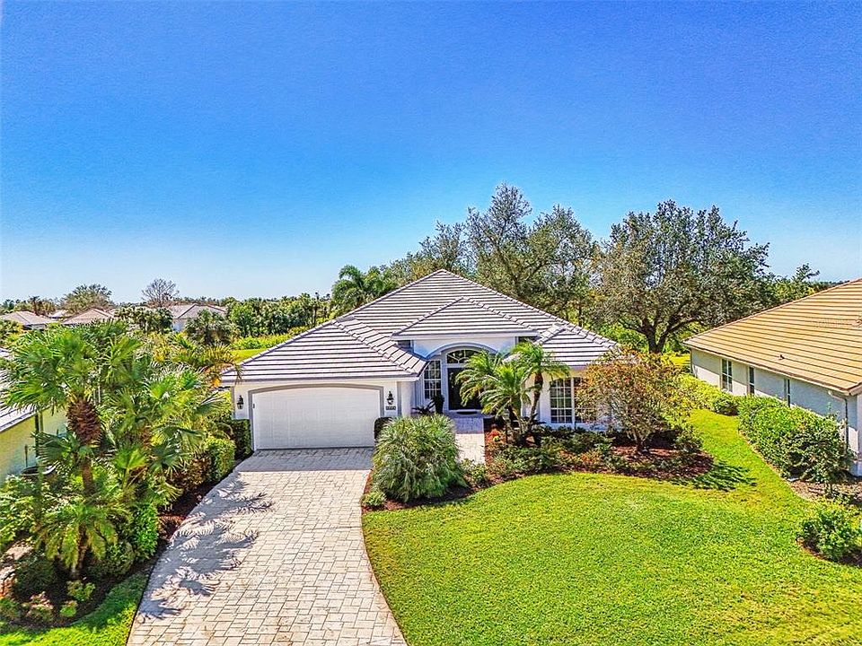 Why wait to build new when you can own this stunning FERO signature custom-built “SOUTHERN BELL” 3-bedroom home in the highly desirable community of Riverwood. Perfectly positioned on an oversized, landscaped lot, this home boasts nostalgic, picturesque golf course views with a charming bridge nestled beneath a majestic oak tree—creating a serene and peaceful backdrop. From the long, decorative stamped concrete driveway and impressive front entry, step inside to a spacious, light-filled interior featuring soaring volume tray ceiling heights and a modern open-concept layout. The kitchen is a true showstopper, showcasing quality cabinetry, Corian countertops, and a sleek design that seamlessly blends style and function. Gather around the elegant in-wall entertainment center and indulge in spa-like luxury with Roman showers, an updated primary bathroom, and a generous California walk-in closet. Pocketing sliding glass doors open to reveal an expansive tiled lanai with a new picture screen, ideal for entertaining or enjoying your own private oasis. Notable upgrades include a brand-new lanai cage, a newly replaced tile roof (2019), an oversized garage with 4 ft. extension, and a high-efficiency air conditioner (2017), among others. This home is move-in ready, with some quality furnishings included, offering exceptional value priced under $500,000. This represents a rare opportunity to own a beautifully maintained home on a premium lot in one of Florida’s most sought-after communities.About Riverwood: Set on 1,300 acres of preserved natural beauty, Riverwood is a master-planned, gated community that combines elegant living with resort-style amenities. Conveniently located in Port Charlotte—just 45 minutes south of Sarasota and an hour north of Fort Myers—this award-winning community has been recognized as the #1 Place to Live by CNN and Money Magazine and a Top Place to Retire by Where to Retire Magazine.Residents enjoy a 4.5-star Golf Digest-rated golf course, private Beach Club on the Gulf of Mexico (membership subject to availability), a state-of-the-art fitness center, recreation complex, junior Olympic-size pool, plus easy access to beaches, fishing, boating, marinas, shopping, dining, and entertainment. Don’t miss your chance to live the Florida lifestyle you’ve always dreamed of—schedule your private tour today and discover everything this beautiful home and community have to offer!