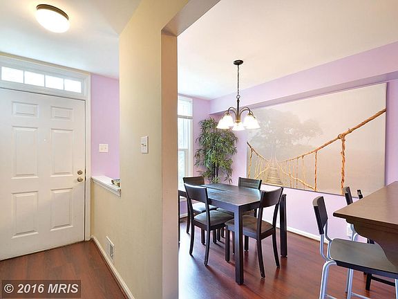 Bright & sunny 2 BR/2.5 BA 3-level brick townhouse! Main level has sep dining rm w/ breakfast bar passing thru to kitchen, pwdr rm, plus living rm w/ wood-burning FP & slider to deck with wooded view. 2 BRs up w/ attached master bath. Walk-out LL has recreation room w/ wet bar & mini fridge, 1 full bath, laundry/storage/utility room, French doors to backyard. All new windows & doors! FHA approved!