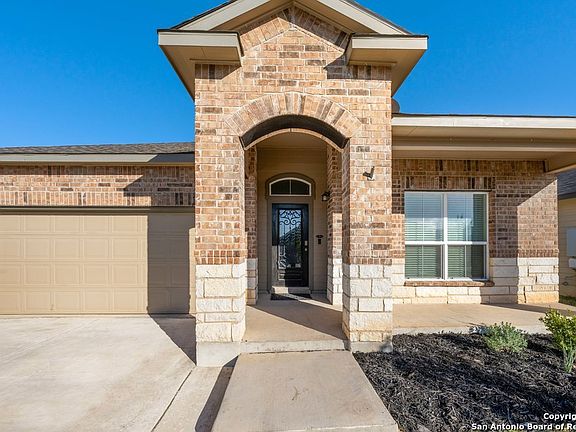 Live in the gorgeous Copper Canyon subdivision! This beautifully maintained 1 story-open concept property features 4 bedrooms, 2 bathrooms, granite countertops, tile flooring, water softener, outside shed, mounted garage ceiling storage rack and an extended electric wired covered patio-tv included. Professionally cleaned, fresh paint, new landscaping-with all appliances included, even the washer, dryer and refrigerator makes this home move-in ready! The community amenities only a 5 minute walk away feature a pool, playground and fitness center. Located off Hwy 281 and FM 1863, shopping, restaurants and great Comal ISD schools are just a 5-15 minute drive. You'll love this home, community and neighborhood vibe!