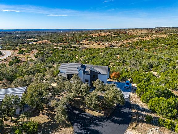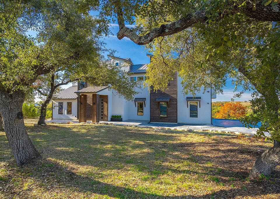 Discover breathtaking Hill Country views from every room of this custom-designed home on 12.54 acres in The Hills of Cross Canyon Ranch, a gated community in Spring Branch, TX. Built in 2020, this 3,264 sq. ft. home features 4 bedrooms, 3.5 bathrooms, and countless custom touches. Highlights include a grand entry with a floating walnut staircase, an open-concept kitchen and living area, an expansive second-story balcony with an outdoor kitchen, a spa-like primary suite, and an elevator. The property also includes a 1,200 sq. ft. insulated workshop with a roll-up door, cooling units, and a 3/4 bathroom. The gently sloping terrain offers long-distance views, hiking trails, and groves of mature live oaks. Conveniently located less than an hour from San Antonio, 55 miles from Austin, and close to Wimberley, Gruene, and Canyon Lake, this property blends privacy, luxury, and accessibility.