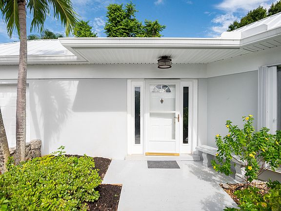 Welcome to the highly desirable Yacht & Country Club! This spacious poolside home, perfectly situated on the golf course offers 3 bedrooms, 3 bathrooms with a Split floor plan with generous sized bedrooms. The home features a newer updated Kitchen with Island, great for entertaining, along with a screened-in Patio, a two car garage plus a golf cart garage, and a circular driveway for added convenience.Recent updates include: New Roof 2017Pool Plumbing redone in 2024Wind mit additional nail completed 2024 $3500 credit to complete two car garage with epoxy finish!